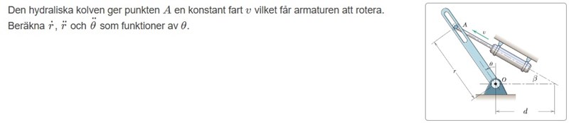 Men jag fattar inte, även om vi har hastighetens ekvation för polära koordinater så vill vi inte ha med er och e. Så de måste försvinna, jag trodde bara vi behövde derivera vårat r så skulle vi få svaret utifrån ekvationen för polära koordinater men då måste vi får bort d och också få med v. Även om vi deriverar m.a.p d så får vi bort variabeln d från ekvationen för r men då behöver vi ett v.