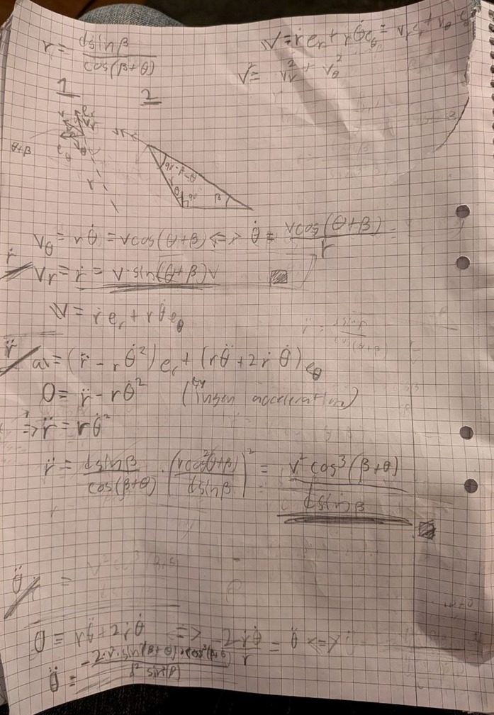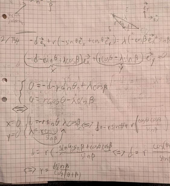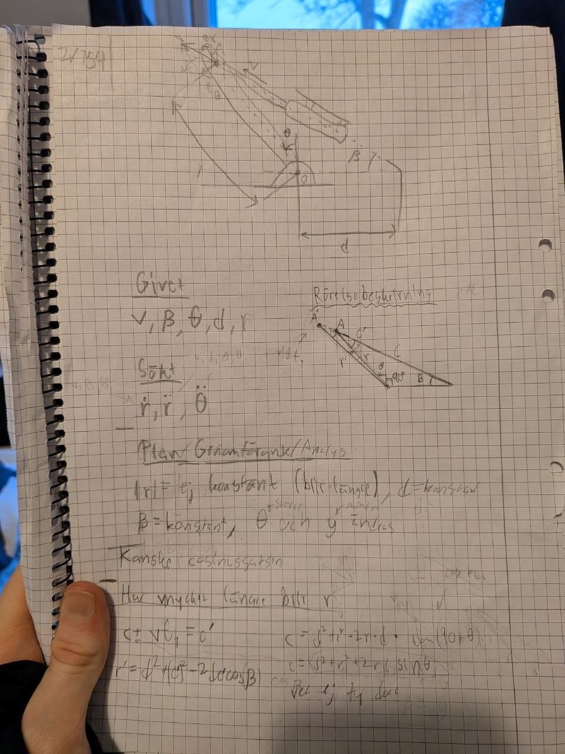 Edit: Okej men vi har r, sen ville vi ha r' så jag deriverade r och då fick jag r'=-(d*sinB)/(sin(+B)... Jag kan ha deriverat r fel.
