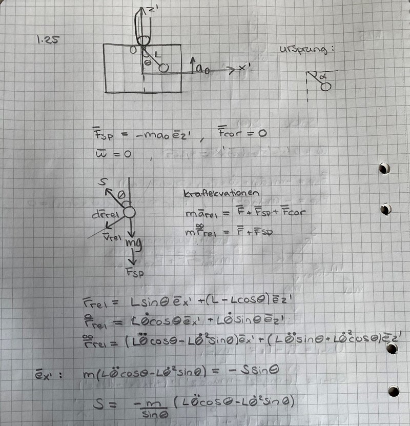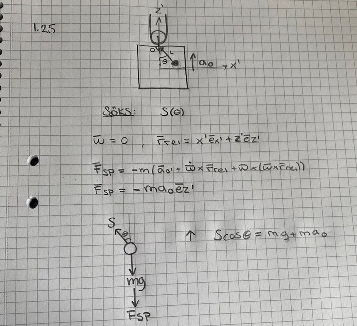 2. Kraftekvationen ställs väl då upp som marel = F + Fsp + Fcor ? Men hur bestämmer man arel? Är det partikeln relativa acceleration väl? Är det roo (ring ring) ?