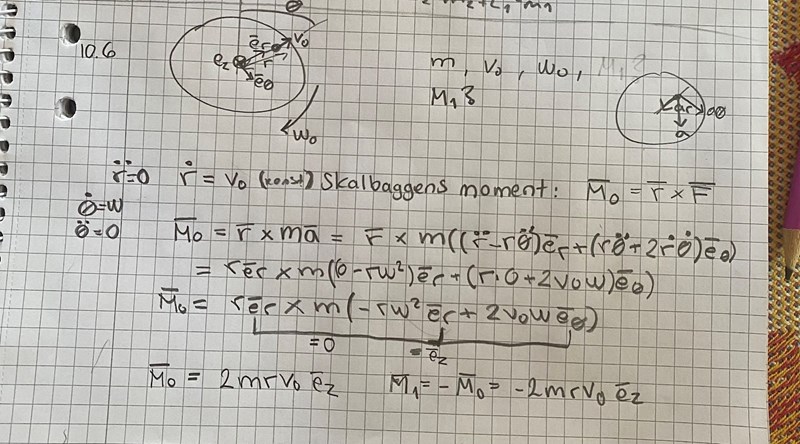 Jag tänker att M0 är skalbaggens moment eller liksom påverkan på rörelsen, och då måste M1 vara motriktad det för att motverka att det sker