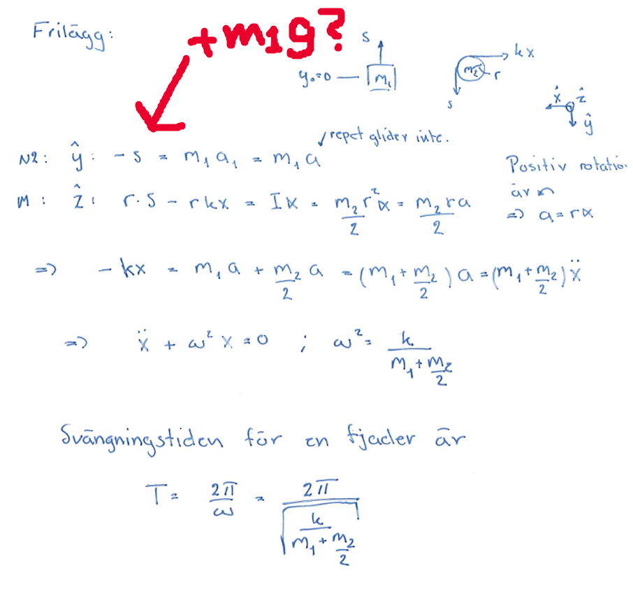D4NIEL skrev:Det verkar ju vara ett opedagogiskt lösningsförslag, men ibland gör man så för harmoniska svängningar eftersom jämviktstermerna ändå tar ut varandra.