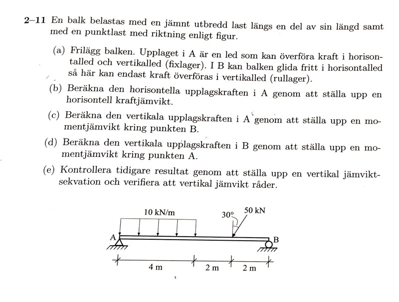 om du delar upp krafterna i komposanter, parallella med balken och vinkelräta.