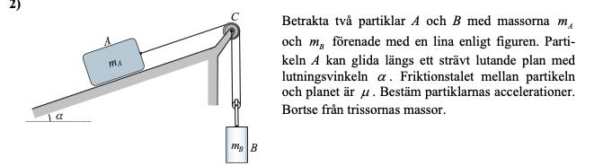 Jag har räknat med att både A och B har samma acceleration. Känns som att detta är något man bör ha lärt sig när man läste gymnasiekurserna men förstår verkligen inte varför A och B har olika acceleration.