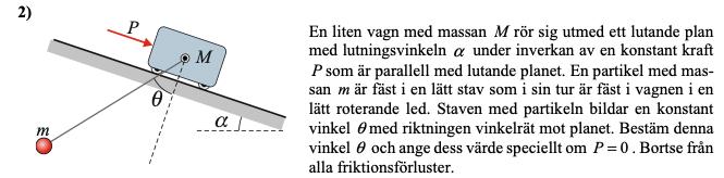 Här är det däremot en stav men m och M har samma acceleration, förstår inte riktigt hur situationerna skiljer sig, förutom att ena har en stav och den andra en tråd