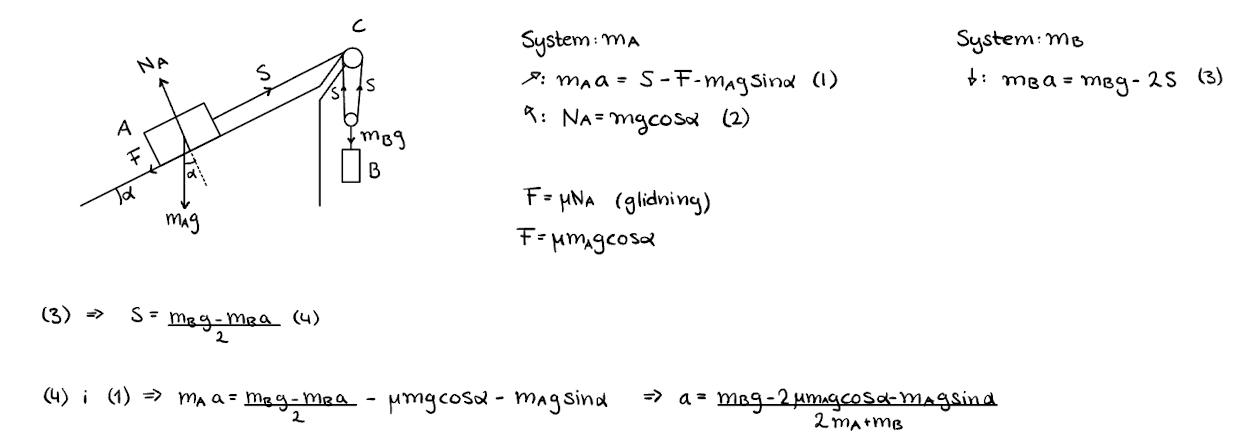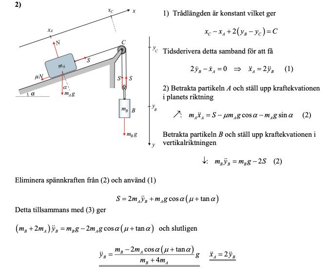 Så om snöret inte gick igenom en trissa vid B, dvs om kraften uppåt endast var S, så skulle accelerationen vara densamma för A och B?