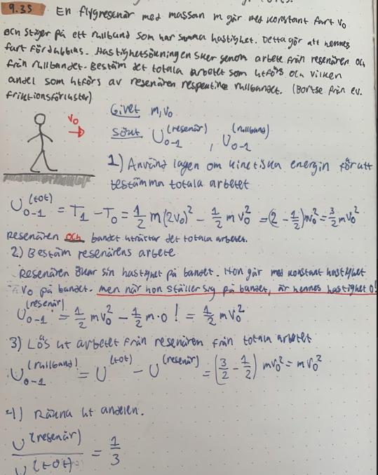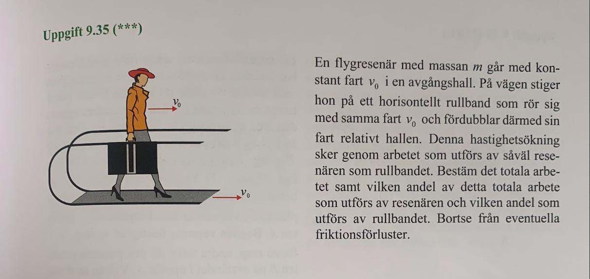 Läraren tillämpar mekaniska energilagen men menar att när resenären kliver på rullbandet är dennes fart . Jag tänker att resenären kommer in med en ingångshastighet , varför kan man tänka att dennes ursprungsfart är ?