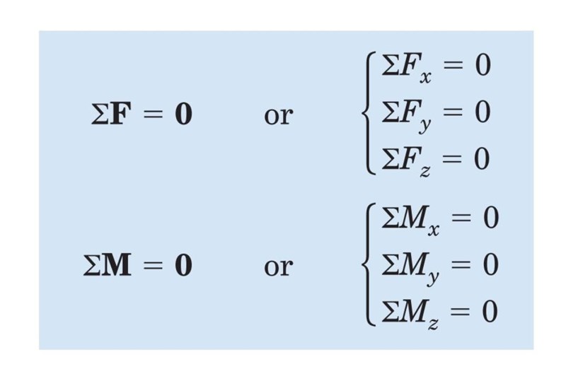 Inom statik söker man statisk jämvikt vilket ger följande relationer: