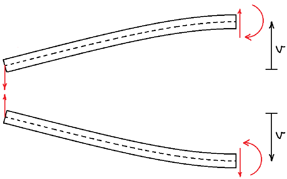 Är kravet helt enkelt att man har moment och krafter som är motriktade, eller måste också kraften vid medurs moment alltid vara uppåtriktad och kraften vid moturs moment alltid vara nedåtriktad? För det märker jag är samma för båda konventioner. Varför är det så? För momenten tycker jag det är logiskt att se att balken böjs nedåt som en glad mun (för amerikansk konvention) men kraftriktningarna känns väldigt random.