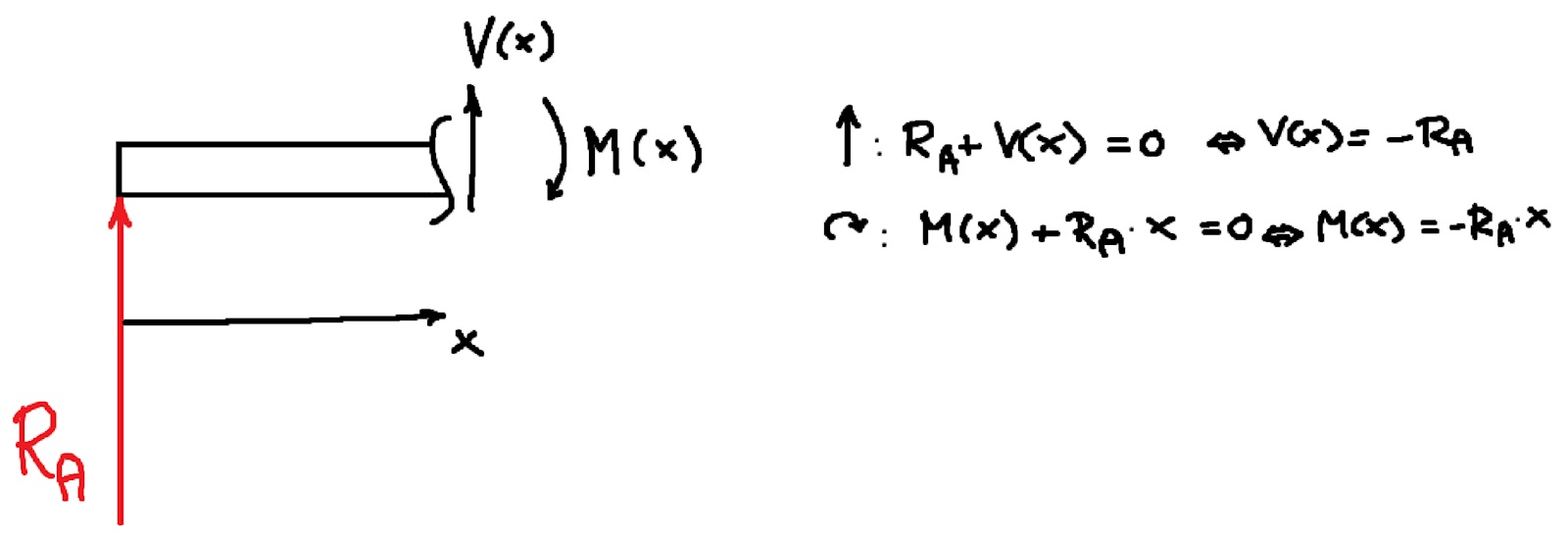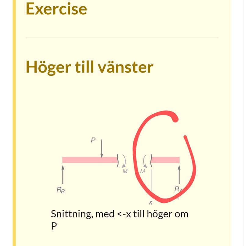 Jag undrar övrigt om detta brukar vara den lättaste metoden, alltså att snitta sig fram från x=0 i varje del där det dykt upp en intressant kraft. Ett positivt högersnitt antar jag att det endast blir i den svenska konventionen. På tal om konvention, vad är det som gör att snittet blir korrekt?