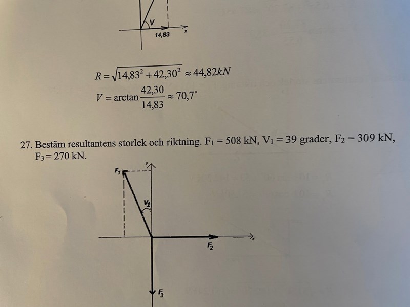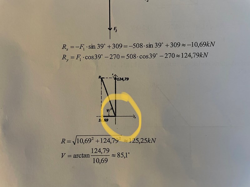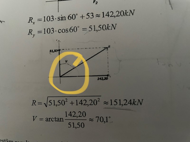 Hej! Jag undrar hur man ska placera ut vinkel för den resulterande kraften. Skulle det inte vara samma som vinkeln för komposanterna då?