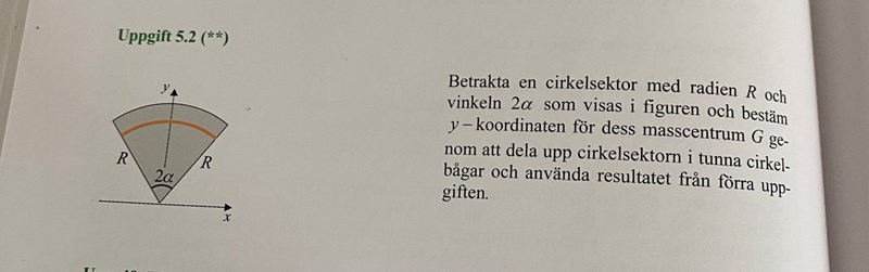 PATENTERAMERA skrev:yG är y-koordinaten för cirkelbågens masscentrum. Vad handlade den ”förra uppgiften” om? Jag misstänker att det var just detta resultat.