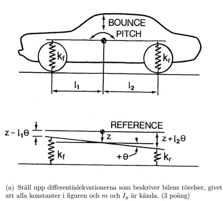 D4NIEL skrev:Fjädrarna strävar efter att hålla bilen någorlunda vågrät. Det innebär att förskjutningar från jämviktsläget () ska motverkas. När bilen vrids medurs som på uppgiftsbilden ska fjäder f minska sitt momentbidrag samtidigt som fjäder r ska öka sitt momentbidrag. I din föreslagna ekvation verkar det vara tvärtom.