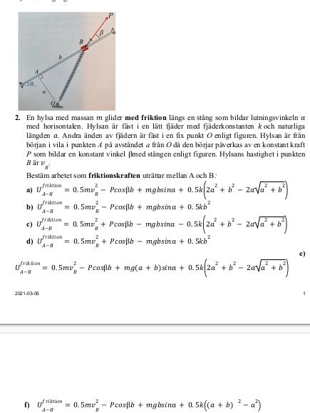 PATENTERAMERA skrev:Längden på fjädern är från början a. I läge B så är fjäderns längd (pytagoras igen)