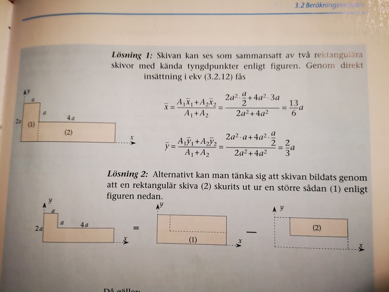 Hejsan! Sitter och läser på om tyngdpunktsberäkningar och har helt fastnat på ett exempel i boken jag inte tycker stämmer (se bild).