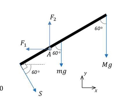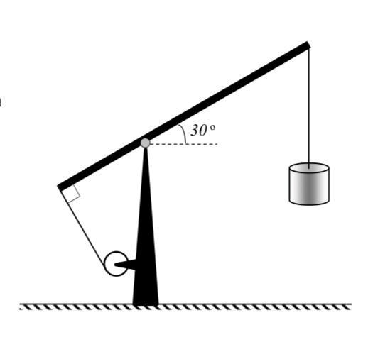 Krafterna och vill rotera balken medurs. Därför måste det finnas någon kraft som vill rotera balken moturs och håller emot, annars är inte balken i jämvikt. Kraften vill rotera balken moturs då den pekar snett nedåt.