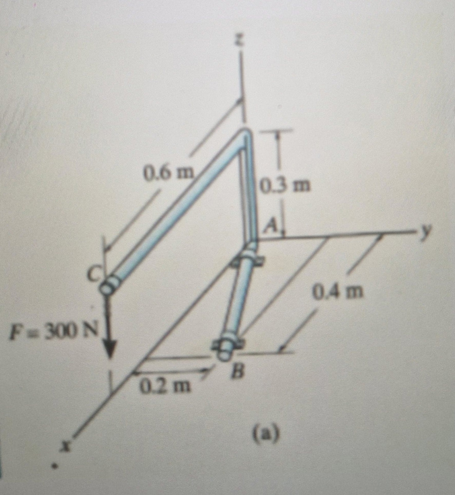 För konstruktionen nedan. Bestäm kraftens F projektion på stången AB samt dess moment kring