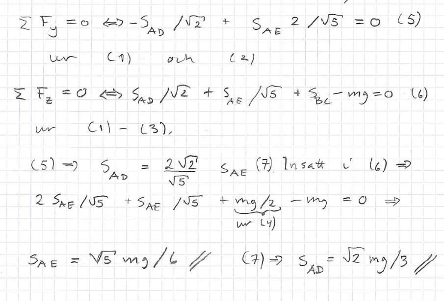 Jag har räknat alla krafter som vektorer, men förstår alltså inte hur man gjorde med jämviktsekvationerna.