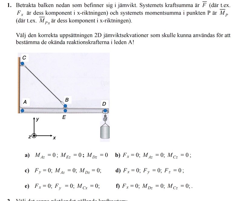 Tack, förstår lite bättre. Men det enda jag undrar nu är varför b och c inte kan vara rätt? De kraven som finns är att rAB inte ska vara parallell med F. Och det sker varken i b eller c. T.ex i b så är ju Fx parallell med AD, medans rAC pekar uppåt, vinkelrätt mot D, alltså inte parallella?