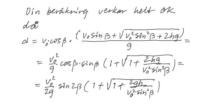 Det går inte bra om vi sätter vinkeln till 0, så den formeln kan inte stämma.
