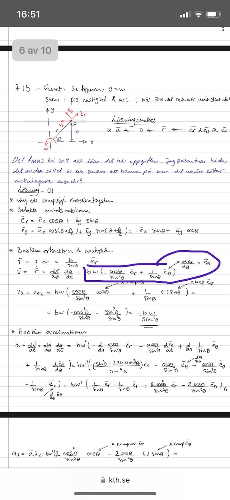 Jag förstår inte det där steget? Hur blir dr/dø * dø/dt = det inringade?