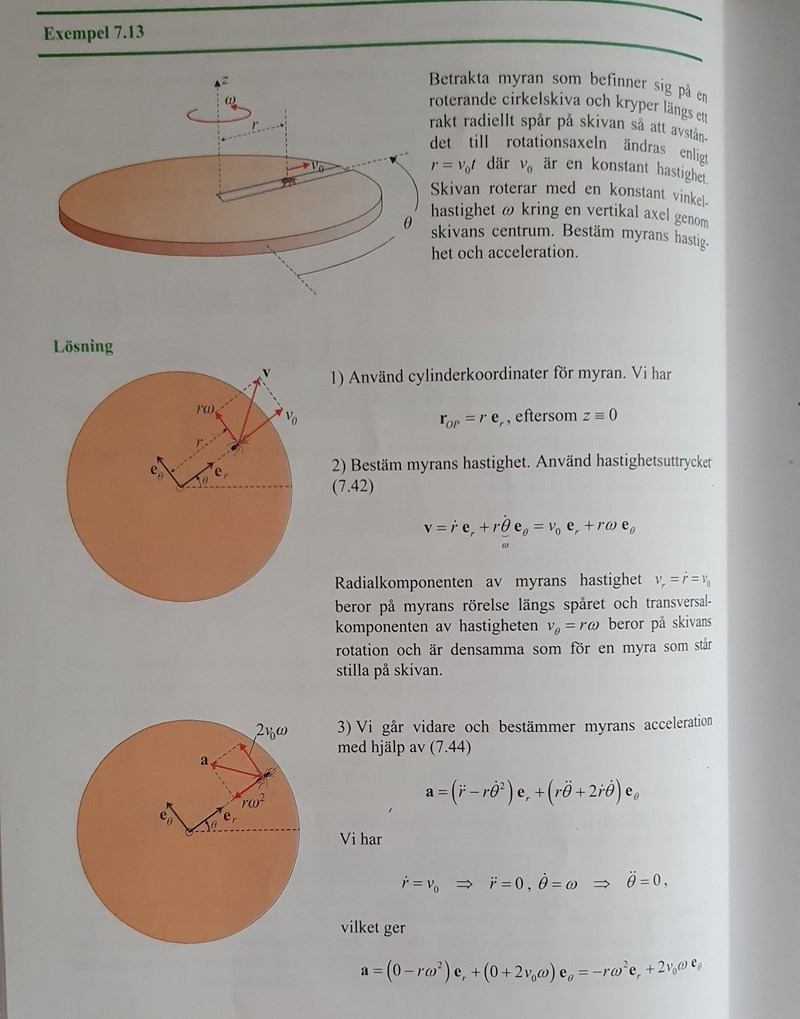 Mekanik, kinematik: myra som kryper på en roterande skiva