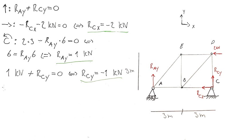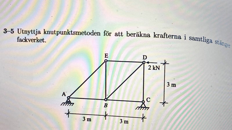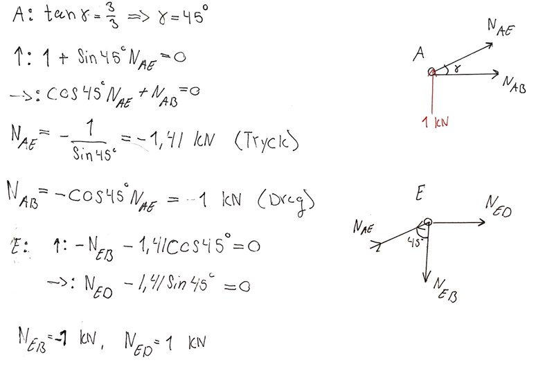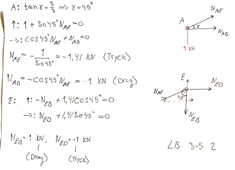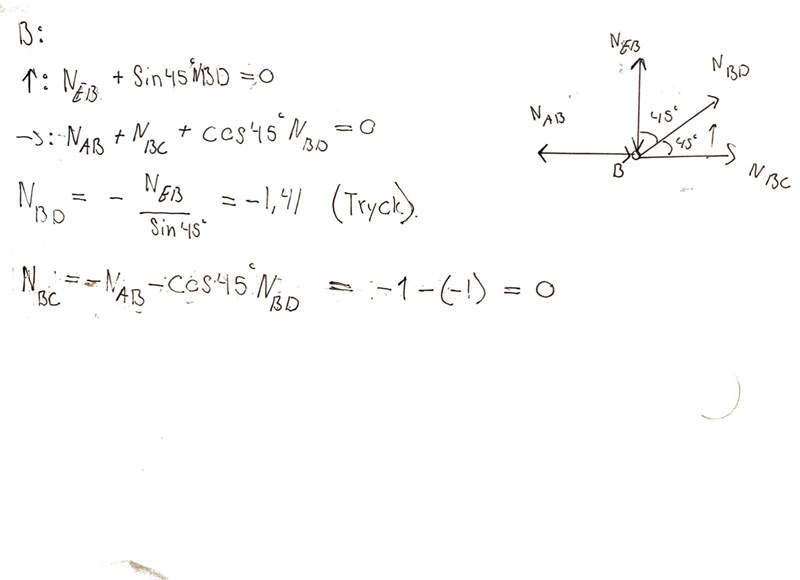 NBC skall vara 2 kn men jag får 0 kN eftersom 1 kn + (-1 Kn) =0, alla okända i beräkningen (förutom NBC) är definierade så jag tror inte det är ett riktningsfel. Skulle uppskatta hjälp. Tack!