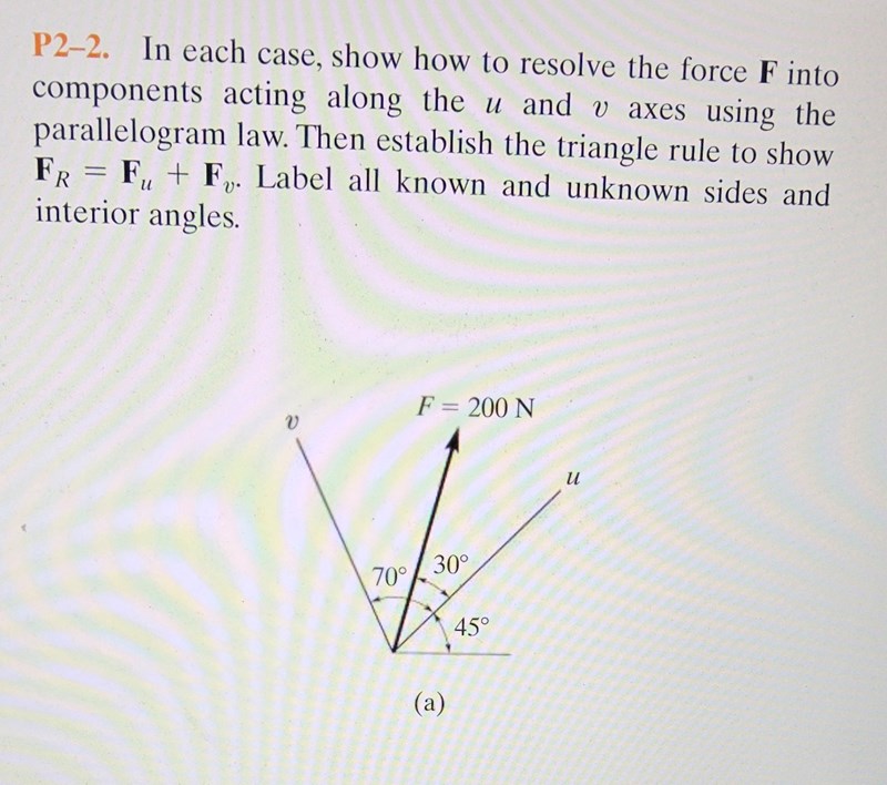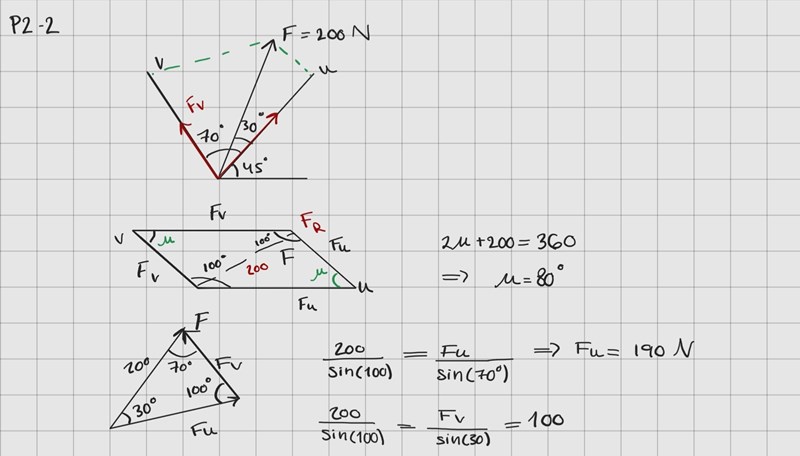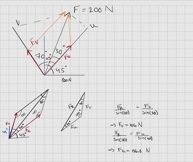 Jag tänkte så nu men det blir fortfarande fel, för jag får inte att F=Fv+Fu. Jag fattar det som att vinkeln mellan F och u är 30° från bilden.