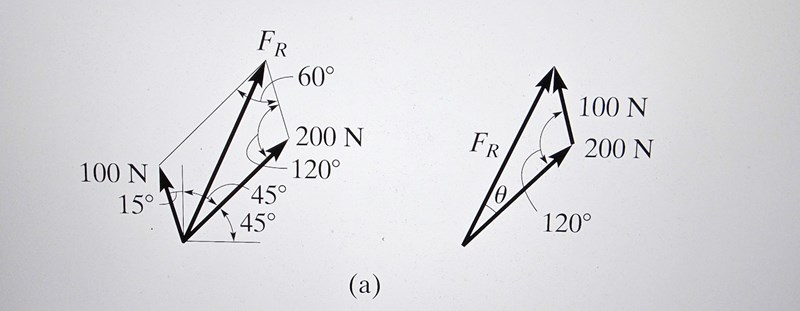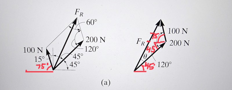 här är facit till uppgiften och jag fattar inte hur de får 120° mellan Fv och Fu. Jag fick den vinkeln till 110°.