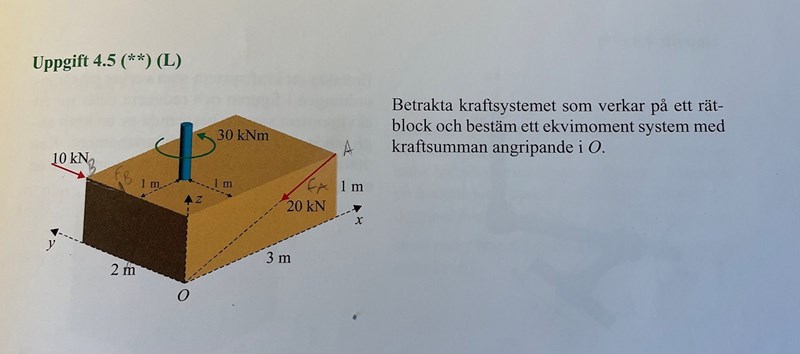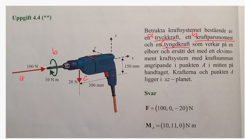 Men jag förstår inte hur jag ska räkna ut Kraftmomentet i detta kraftsystem?