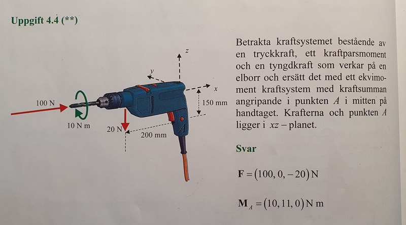 Hej, i kapitlet kraftsystem i min mekanikbok handlar det om hur man reducerar kraftsystem, men med "kraftsystem" verkar det bara syfta på ett antal krafter samt deras angreppspunkt. Vad händer då vi från början redan har ett antal kraftmoment på kroppen? Det sägs ingenting om det. Jag måste ha missat nånting, men jag vet inte vad, och jag har ingen intuition om dessa saker, mycket frustrerande.