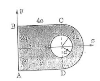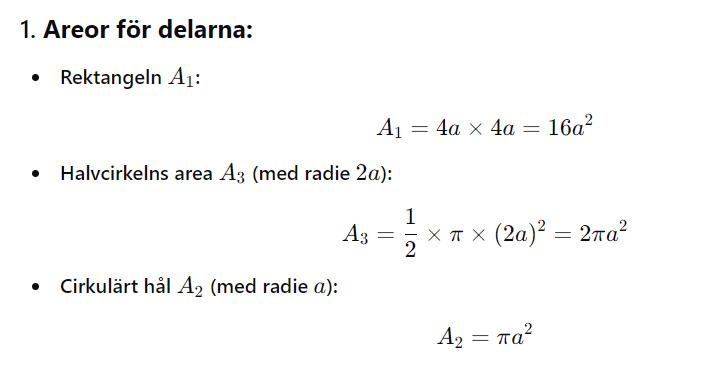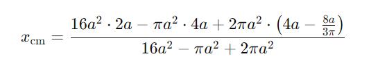 Eftersom hela halvcirkeln ligger till höger om kvadraten så måste halvcirkelns masscentrum ligga till höger om kvadraten. Så du måste få ett x-värde som är större än 4a.