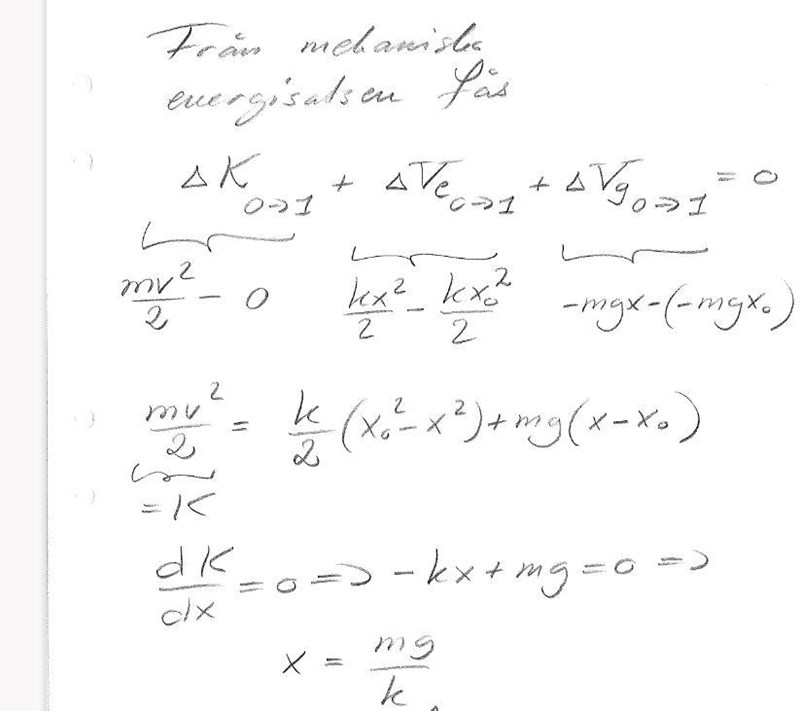 För att kunna använda mekaniska energisatsen för att räkna fram maximal hastighet behöver jag räkna ut x.