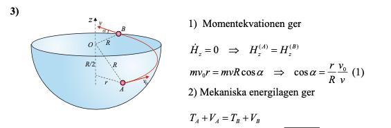 Hur kommer det sig att . De verkande krafterna är tyngdkraften och normalkraften vars verkningslinje alltid går igenom origo. Jag förstår att tyngdkraften inte utövar ett moment med avseende på z axeln eftersom tyngdkraften är parallell med z axeln men borde inte normalkraften utöva ett moment?