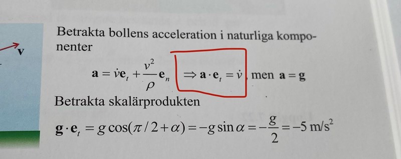 Ta skalärprodukt med et{\bf e}_t på högerled och vänsterled; et·en=0{\bf e}_t \cdot {\bf e}_n = 0.