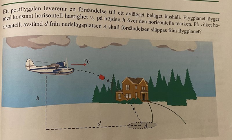 Ja, h+d i det övre exemplet motsvarar h i det nedre exemplet. Om x är det horisontella avståndet mellan flygplanet och stupet, så motsvaras x+s i det övre exemplet av d i det nedre exemplet.