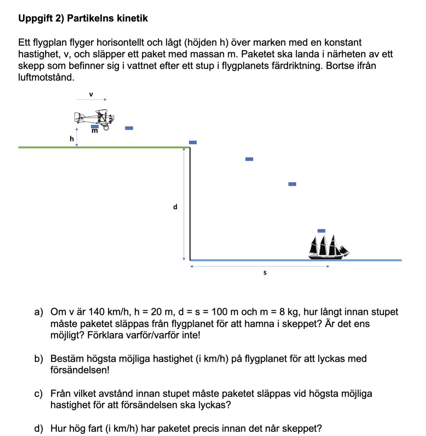 Kan jag använda detta lösningsförslag för att lösa a uppgiften? i så fall hur ska jag göra när det gäller höjden och avståndet till skeppet? blir den totala höjden H= h+d