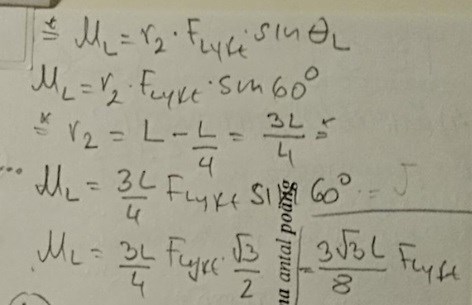 Därefter har vi längden till lyftkraften, . Här gjorde jag fel. Jag visar min lösning först och därefter den korrekta lösningen, därefter ger jag slutresultatet till bägge ekvationer.