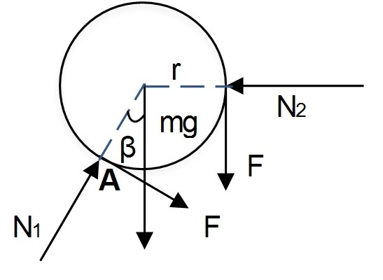 En enkel momentjämvikt kring centrum ger genast att friktionskrafterna måste vara lika. Eftersom friktionskrafterna vill rotera pappersrullen åt olika håll måste glidning ske. Fullt utvecklad friktion utvecklas först vid eftersom det är den minsta normalkraften, dvs . En momentekvaton kring punkten A ger då: