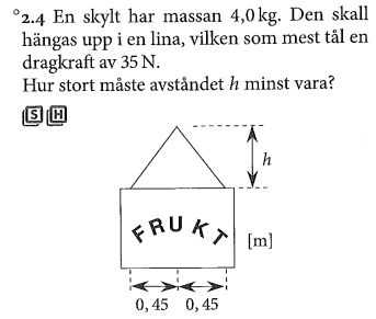 Vid minsta h är kraften i repet precis 35 N. Om du vet detta kanske det borde bli lättare att lösa för h.