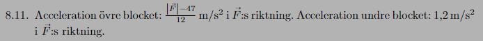 Facit pratar nog om situationen där kraften är så stor att övre blocket börjat glida över det nedre blocket. Friktionskraften är då .
