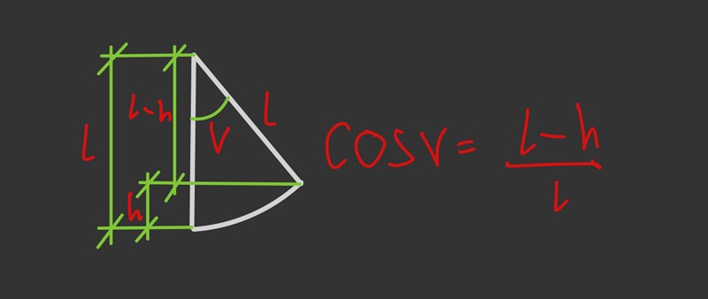 I de lösningförslag jag hittar verkar de anse att det är trivialt att h i denna bild https://prnt.sc/10c5kt8 kan skrivas som l(1-cosv), men jag vet inte hur man kommer fram till det. Tack!