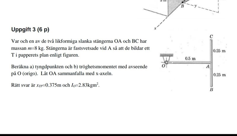 Tygpåse skrev:T.ex är tröghetsmomentet för en lång rak stång 1/3*ml^2 eller 1/12*ml^2.