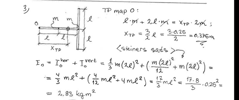 T.ex är tröghetsmomentet för en lång rak stång 1/3*ml^2 eller 1/12*ml^2.