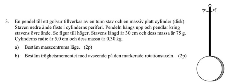 Jag har fastnat på en nedan uppgift, där tröghetsmomentet för en pendel ska bestämmas.