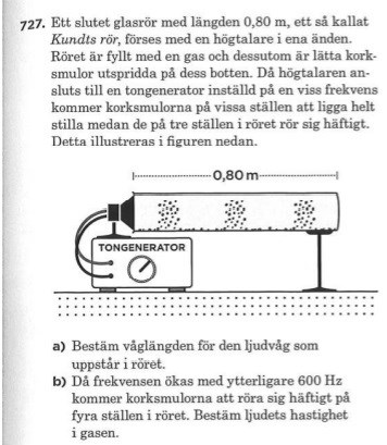 b) Har tänkt att eftersom det ökas med 1 våglängd efter frekvensen ökas med 600hz blir det att 1 våglängd <=> 600hz