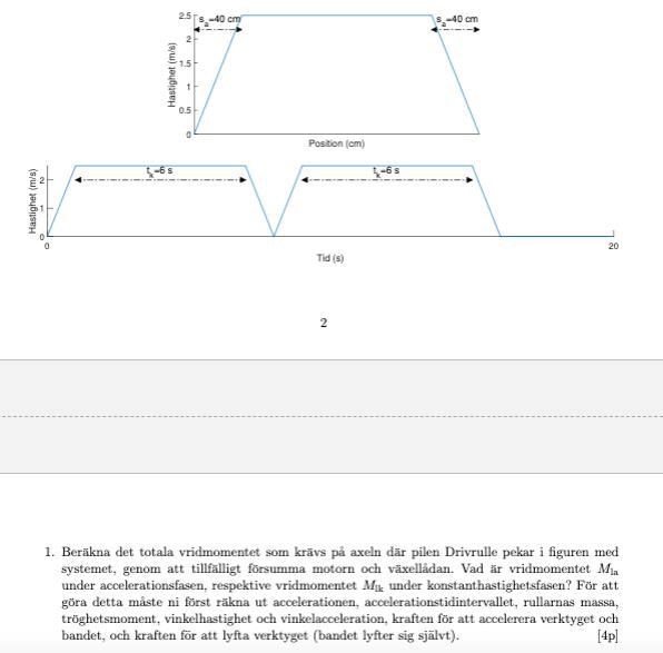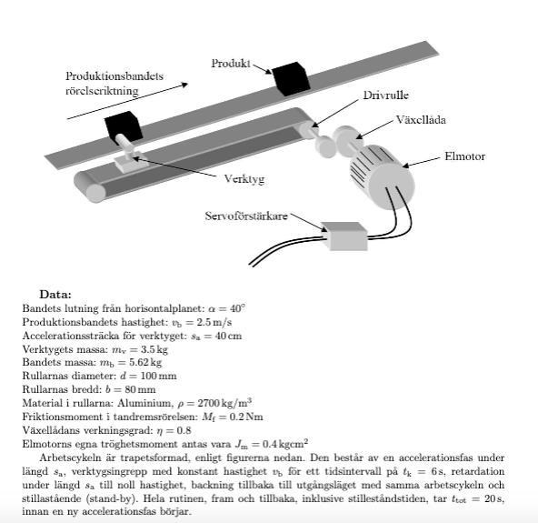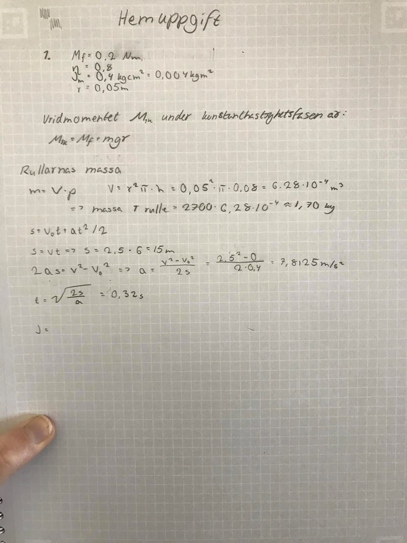 I den formeln, är Jl vårt tröghetsmoment map på rullen? Isf är min fråga om det är en rulle som man räknar med eller om man ska räkna med båda drivrullarna? Och jag tycker också att det är lite oklart gällande det som står om att man ska försumma motorn och växellådan. Bör jag inte ta med Jm i momentbalansekvationen då? Tacksam för allt hjälp!