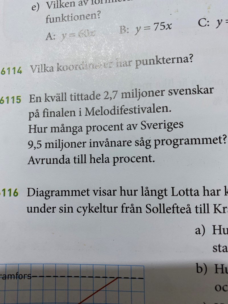 Du börjar med att beräkna hur stor andel som inte tittar och får den till 72%.