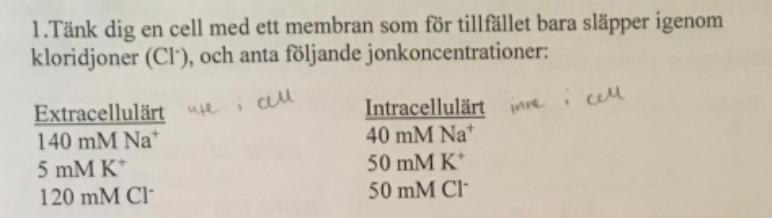 Hej! Jag undrar hur man beräknar membranpotentialen för denna fråga. vet att det finns nernst ekvation men är osäker på om den behövs för följande uppgift, blir jättetacksam för vägledning då jag inte riktigt förstår hur jag ska göra. Det inringade alt är ej korrekt