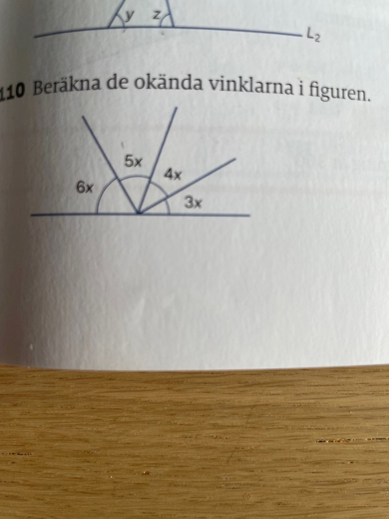 Du har en vinkel på 3x, en på 4x, en på 5x och en på 6x.