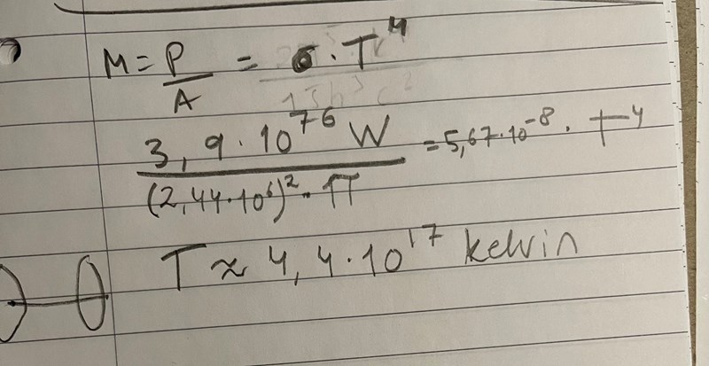 Jag satte att formeln för Emittans är lika med stefan boltmans formel… Men jag är osäker på hur arean r2*pi ska räknas. Det känns fel.